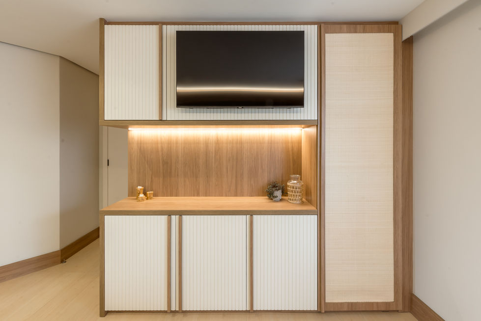 essa reforma trouxe uma brisa fresca de praia pra casa da cliente, tons claros e neutros, um mix de texturas e intervenções na cozinha e no quarto existentes.